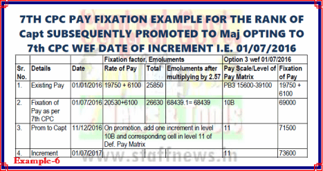 SUBSEQUENTLY PROMOTED TO Maj OPTING TO 7th CPC WEF DATE OF INCREMENT