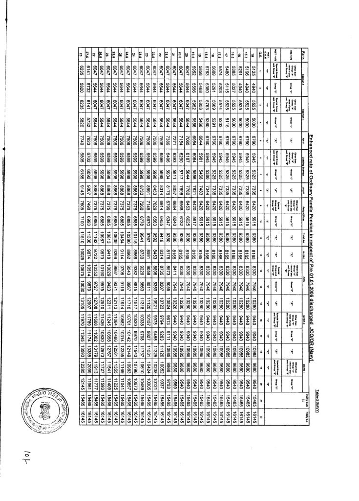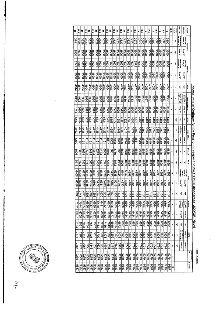 | Enhanced rate of Ordinary Family Pension in respect of Pre 01.01.2006 discharged JCO/OR (Navy) Table4 |