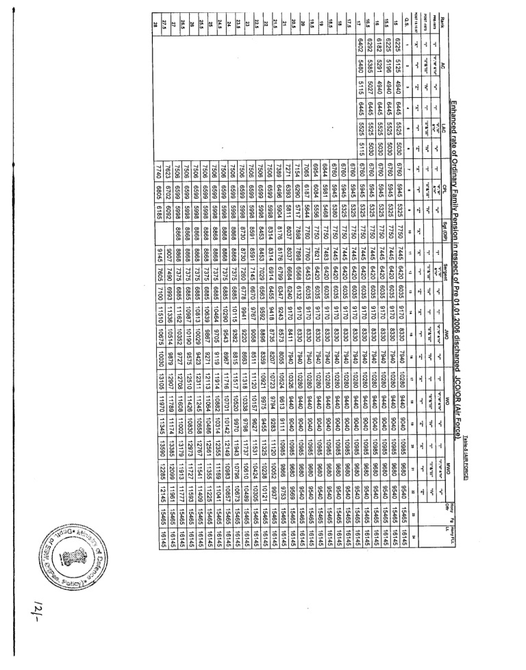 | Enhanced rate of Ordinary Family Pension in respect of Pre 01.01.2006 discharged JCO/OR (Air Force) Table5 |