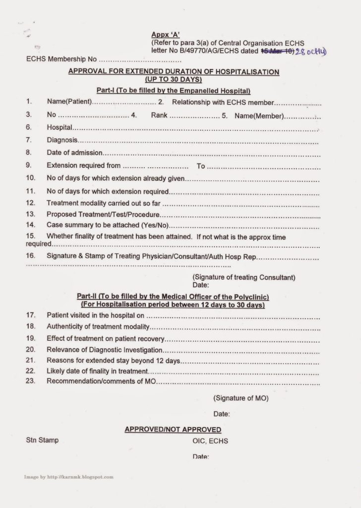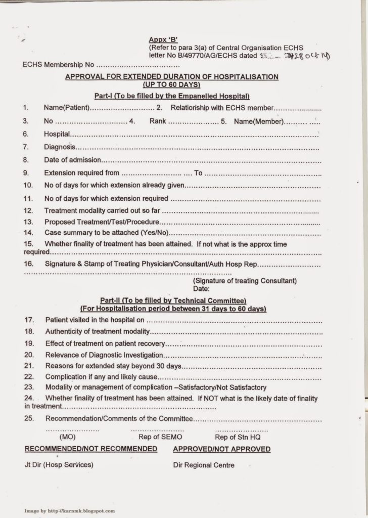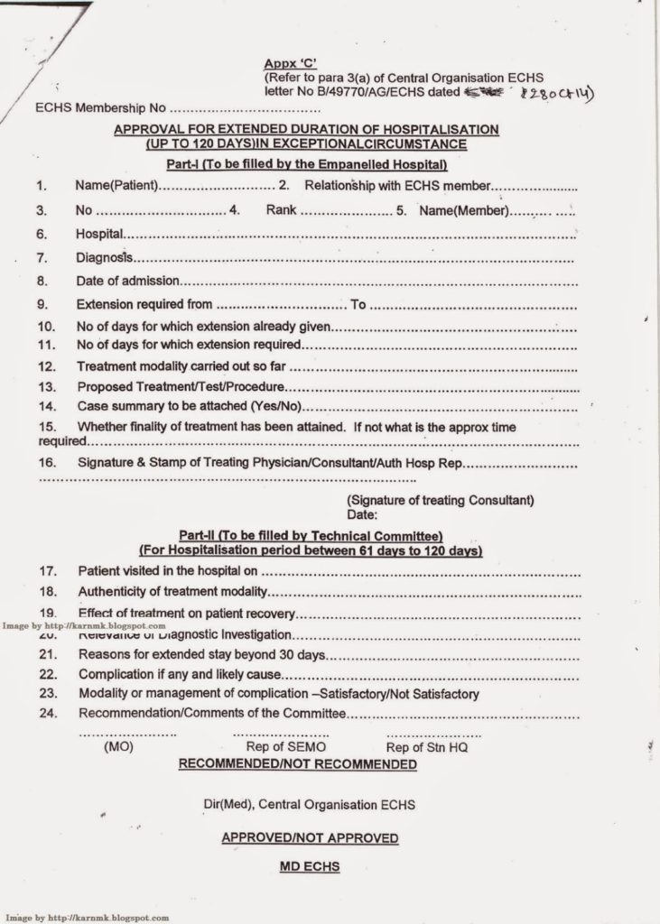 2. ‘ The revised format of Appx ‘A’, ‘B’ and ‘C’ for approval for extended duration of hospitalization beyond 12 days and upto 120 days are fonwarded herewith for use by all empanelled Hospitals. The Appx ‘A’, ‘B’ and ‘C’ as per Para 3 of letter under reference are hereby superseded.
