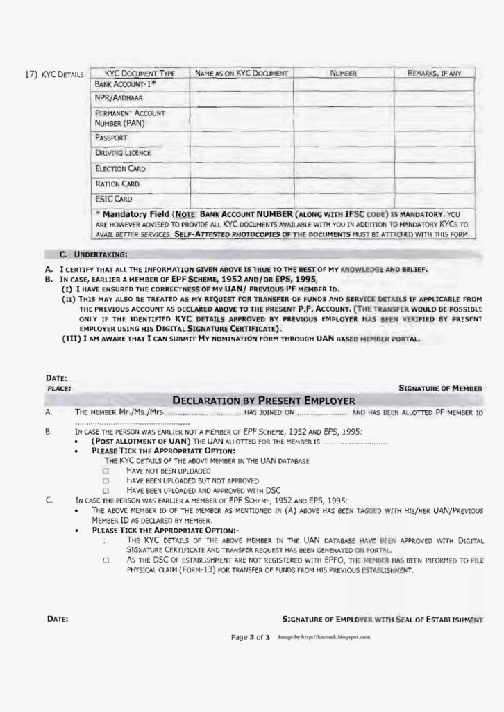3. The Declaration Form [Form No. 11 (New)] will also replace Form No. 13 in all such cases where existing member of the Provident Fund makes a request for transfer of his fund availing the facility of UAN.