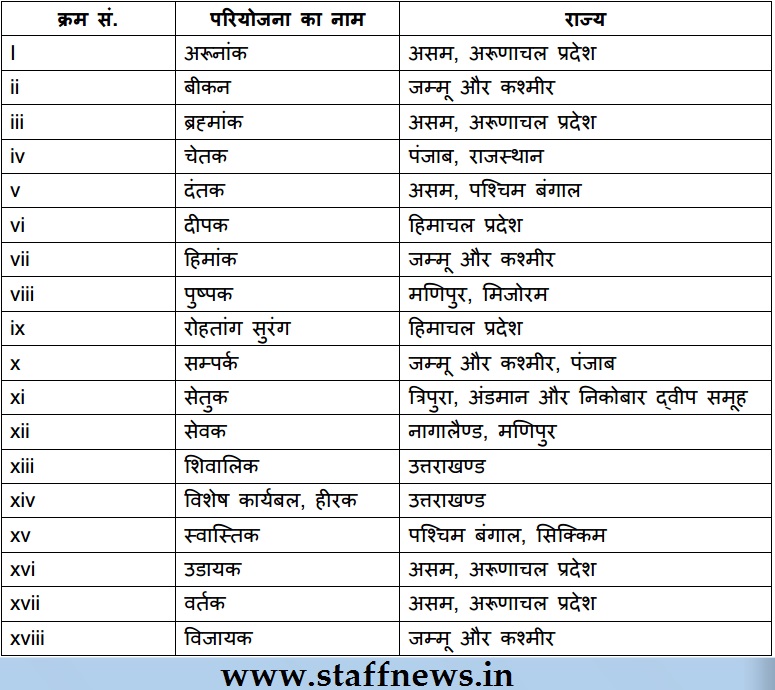 (a) The names of the States in which 18 Projects of BRO are situated in the country are as under: