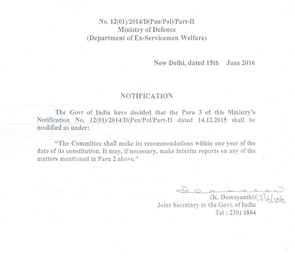 Extension of the tenure of Judicial Committee on OROP from Six month to One year:- DESW Notification