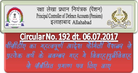 Non-Marriage/ Re-Marriage certificates of family pensioners in November of each year – PCDA Circular No. 192