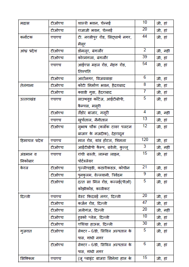 | Himachal Pradesh | HH | Mall Road, Grand Hotel, Shimla | 120 | Yes |