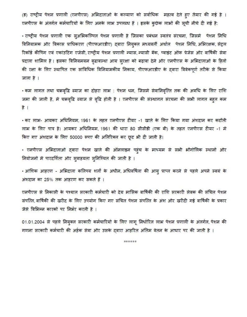 - Transparency and Portability is ensured through online access of the pension account by the NPS subscribers, across all geographical locations and portability of employments.
