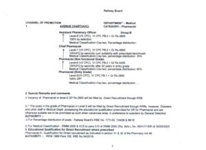i) Vacancy of Pharmacist in level-5 GP Rs.2800 will be filled by Direct Recruitment through RRB.