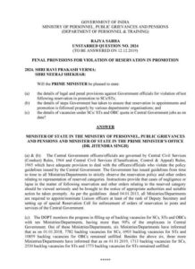 (a) & (b): The Central Government officers/officials are governed by Central Civil Services (Conduct) Rules, 1964 and Central Civil Services (Classification, Control & Appeal) Rules, 1965 which have adequate provision to deal with the officers/officials who violate the policy guidelines issued by the Central Government. The Government has issued guidelines from time to time to all Ministries/Departments to strictly observe the reservation policy and other orders relating to representation of reserved categories. Instructions provide that cases of negligence or lapse in the matter of following reservation and other orders relating to the reserved category should be viewed seriously and be brought to the notice of appropriate authorities and suitable action be taken promptly. As per the guidelines dated 04.01.2013, all Ministries/Departments are required to appoint/nominate Liaison officers at least of the rank of Deputy Secretary and setting up of special Reservation Cell for enforcement of orders of reservation in posts and services of the Central Government.