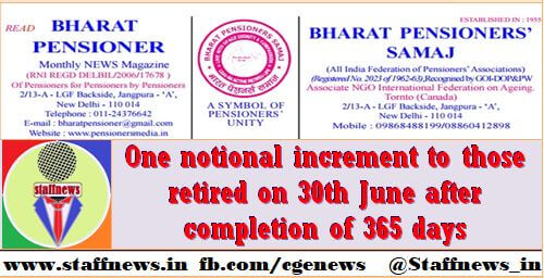 Subject : One notional increment to those retired on 30th June after completion of 365 days