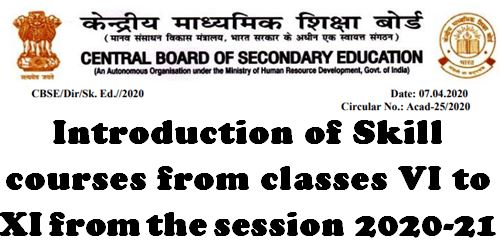 Subject: Introduction of Skill courses from classes VI to XI from the session 2020-21
