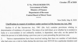 CBDT Clarification in respect of residency under section 6 of the Income-tax Act, 1961 during COVID-19 lockdown