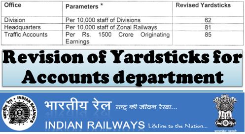 Revision of Yardsticks for Accounts department: Railway Board Order. Yardsticks for units having Sanctioned Strength more or less than 10,000 Manpower should be calculated on pro-rata basis.