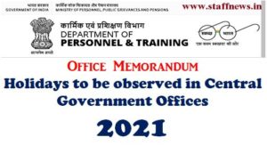Holidays to be observed in Central Government Offices during the year 2021: DoPT OM dated 10.06.2020