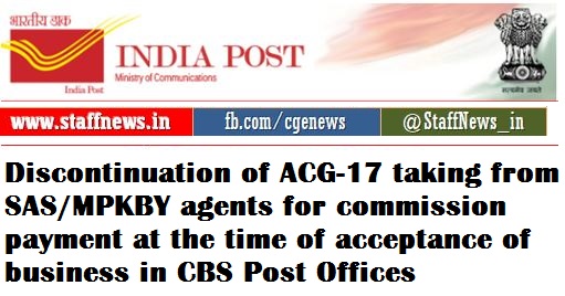 Subject:- Regarding discontinuation of ACG-17 taking from SAS/MPKBY agents for commission payment at the time of acceptance of business in CBS Post Offices.