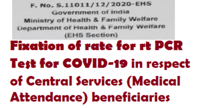 Subject :- Fixation of rate for rt PCR Test for COVID-19 in respect of Central Services (Medical Attendance) beneficiaries-reg