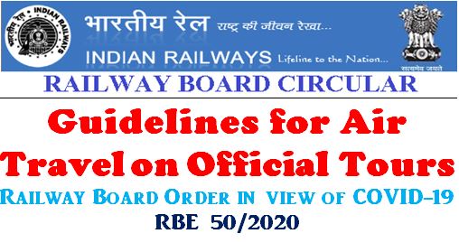 Guidelines for Air Travel on Official Tours : Railway Board Order in view of COVID-19 – RBE 50/2020