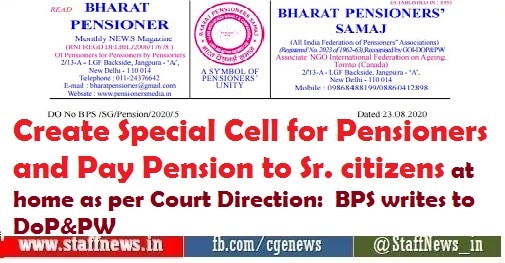 Create Special Cell for Pensioners and Pay Pension to Sr. citizens at home as per Court Direction: BPS writes to DoP&PW