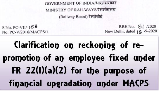 Clarification on pay fixation under FR 22(I)(a)(2) reckoning of re-promotion of an employee under MACPS with illustration: RBE No. 81/2020