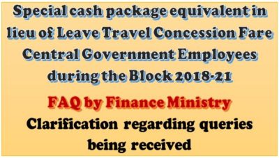 Clarification on Special cash package in lieu of Leave Travel Concession Fare during the Block Year 2018-21: FAQ by FinMin