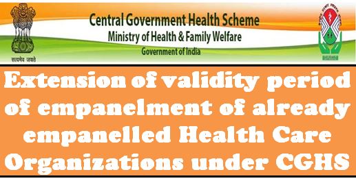 Sub: Extension of validity period of empanelment of already empanelled Health Care Organizations under CGHS