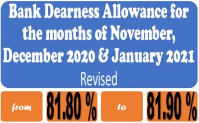 5. In terms of clause 7 of the 10th Bipartite Settlement dated 25.05.2015 and clause 3 of the Joint Note dated 25.05.2015, the rate of Dearness Allowance payable to workmen and officer employees for the months of November, December 2020 & January 2021 shall be 81.90 % of ‘pay’. While arriving at dearness allowance payable, decimals from third place may please be ignored.