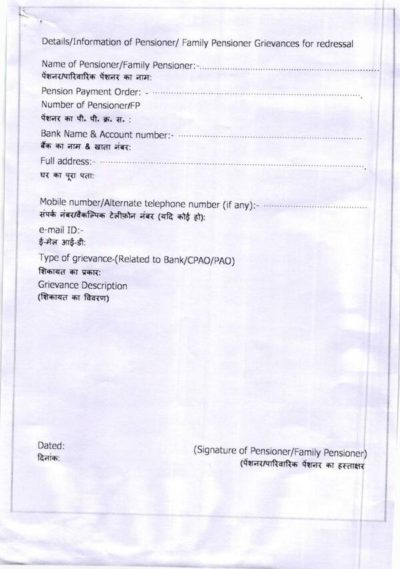 Details/Information of Pensioner/ Family Pensioner Grievances for redressal