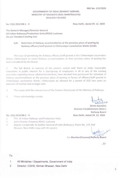 retention-of-railway-accommodation-at-the-previous-place-of-posting-by-railway-officers-staff-posted-to-clw-railway-board-rbe-no-115-2020