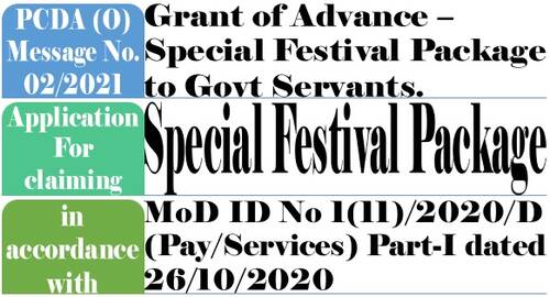 Grant of Advance – Special Festival Package to Govt Servants: Application Format by PCDA (O) Message No. 02/2021