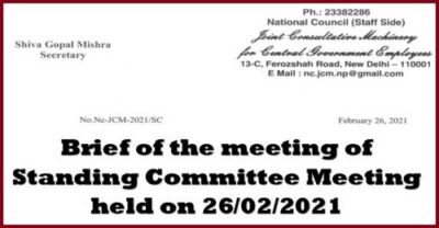 7th Pay Commission Option, Pay Anomaly, Pay Upgradation, MTS Promotional Avenues, NPS, MACP and more discussed in meeting of Standing Committee Meeting held on 26/02/2021