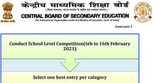 The schools shall conduct the competition at their own level from 6th to 16th February 2021. One best entry per category will be selected by schools for submission to CBSE.