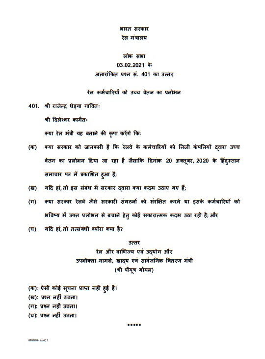 Temptation of High Salary to Railway Employees – रेल कर्मचारियों को उच्च वेतन का प्रलोभन