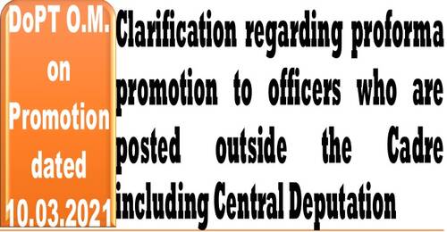 Clarification regarding proforma promotion to officers who are posted outside the Cadre including Central Deputation: DoP&T O.M. dated 10-03-2021