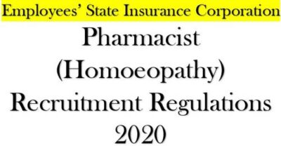 Pharmacist (Homoeopathy) Level-5 in the pay matrix Recruitment Regulations 2020 of Employees’ State Insurance Corporation