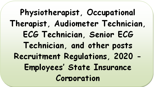 Physiotherapist, Occupational Therapist, Audiometer Technician, ECG Technician, Senior ECG Technician, and other posts Recruitment Regulations, 2020 – Employees’ State Insurance Corporation