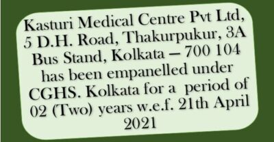 Empanelment of Kasturi Medical Centre Pvt Ltd under CGHS Kolkata for a period of 02 years w.e.f. 21st April 2021
