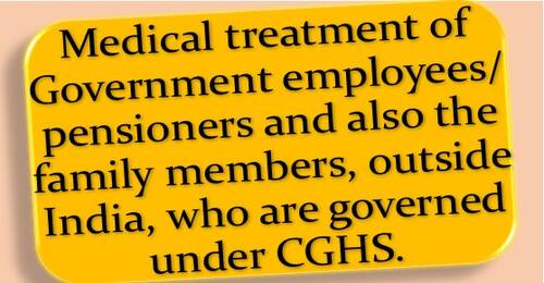 Brief: Medical treatment of Government employees/ pensioners and also the family members, outside India, who are governed under CGHS.