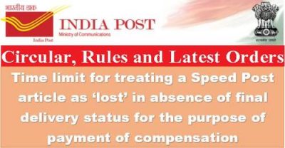 2. The matter has been re-examined. As the process of handling and transmission of Speed Post articles have been streamlined in the recent past and more visibility has come in the transmission and delivery of Speed Post articles due to technological upgradation and regular monitoring under MNOP-; it has therefore been decided that the maximum period after which a Speed Post article can be treated as ‘lost’ in the absence of final delivery status for the purpose of payment of compensation, will be 60 days from the date of booking or 30 days from the date of receipt of complaint, whichever is later, provided that the complaint is lodged within the period prescribed in this regard.