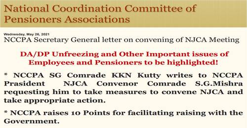 * NCCPA SG Comrade KKN Kutty writes to NCCPA President NJCA Convenor Comrade S.G.Mishra requesting him to take measures to convene NJCA and take appropriate action.