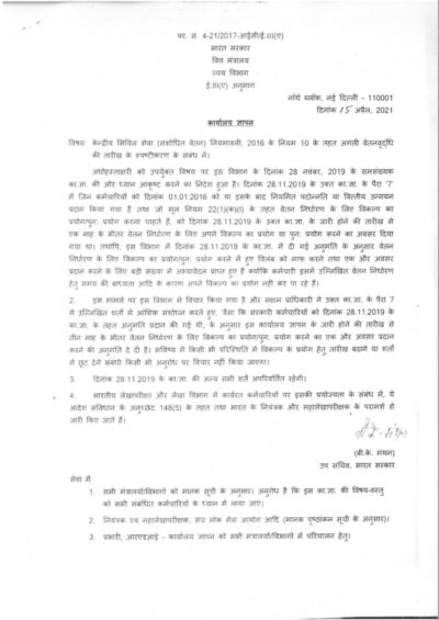 5. वित्त मंत्रालय/व्यय विभाग के दिनांक 15.04.2021 के उक्त कार्यालय ज्ञापन के पैरा 2 में उल्लिखित ‘तीन माह’ की अवधि इन अनुदेशों के जारी होने की तारीख से तीन माह होगी।