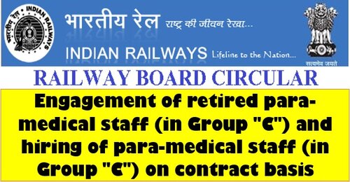 Engagement of retired para-medical staff (in Group “C”) and hiring of para-medical staff (in Group “C”) on contract basis upto 31.03.2022: Railway Board Order dated 30.04.2021