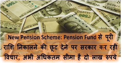 New Pension Scheme: Pension Fund से पूरी राशि निकालने की छूट देने पर सरकार कर रही विचार, अभी अधिकतम सीमा है दो लाख रुपये। वर्तमान नियम यह है कि Pension Fund में से अधिकतम 60 फीसद राशि ही निकाली जा सकती है जो दो लाख रुपये से अधिक नहीं हो सकती है। शेष 40 फीसद राशि एनपीएस में ही रखनी पड़ती है।