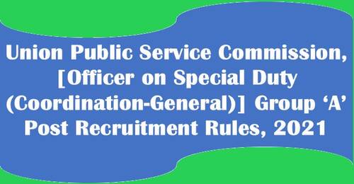 1. Short title and commencement.— (1) These rules may be called the Union Public Service Commission, [Officer on Special Duty (Coordination-General)] Group ‘A’ Post Recruitment Rules, 2021.
