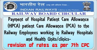 Sub: Payment of Hospital Patient Care Allowance (HPCA) patient Care Allowance (PCA) to the Railway Employees working in Railway Hospitals and Health Units/clinics- revision of rates as per 7th CPC – reg