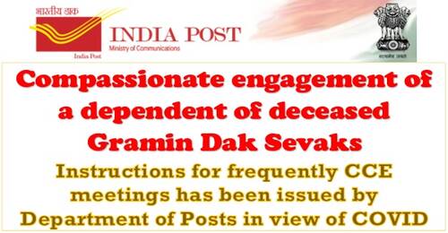 Compassionate engagement of a dependent of deceased Gramin Dak Sevaks: Instructions for frequently CCE meetings has been issued by Department of Posts in view of COVID
