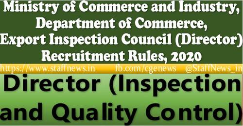 Director (Inspection and Quality Control) (Level-14) Recruitment Rules in Export Inspection Council in Department of Commerce under the Ministry of Commerce and Industry