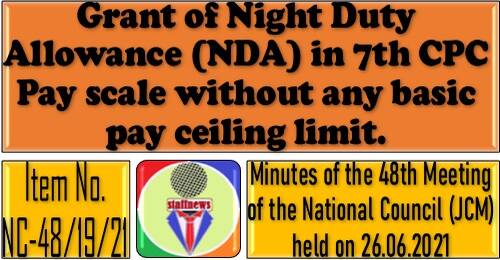 5.22 Item No. NC-48/19/21: Grant of Night Duty Allowance (NDA) in 7th CPC Pay scale without any basic pay ceiling limit.