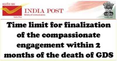 3. Further, attention is invited to letter no. 17-0112017-GDS dated 01.06.2021 wherein it was requested to finalize compassionate case within a period of two months from the death of GDS. To expedite the process, Competent Authority has approved the following stage wise timelines to finalize the Compassionate Engagement within the period of 2 months of from the date of death of GDS:-