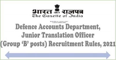 Defence Accounts Department, Junior Translation Officer (Group ‘B’ posts) Recruitment Rules, 2021.