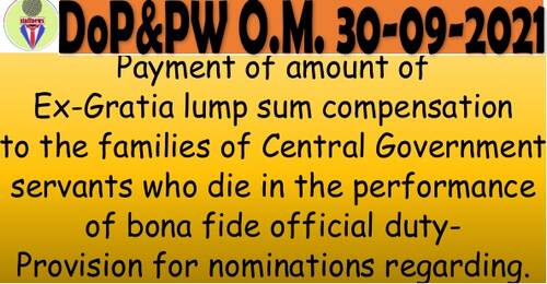 Payment of amount of Ex-Gratia lump sum compensation on death of performance of bona fide official duty – Provision for nomination: DoP&PW