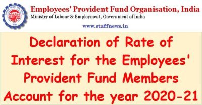 Declaration of Rate of Interest for the Employees’ Provident Fund Members Account for the year 2020-21